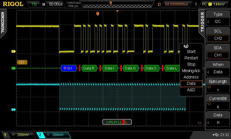 В новых осциллографах смешанных сигналов можно, как на аналоговых, так и цифровых каналах проводить запуск и декодирование сигналов последовательных шин